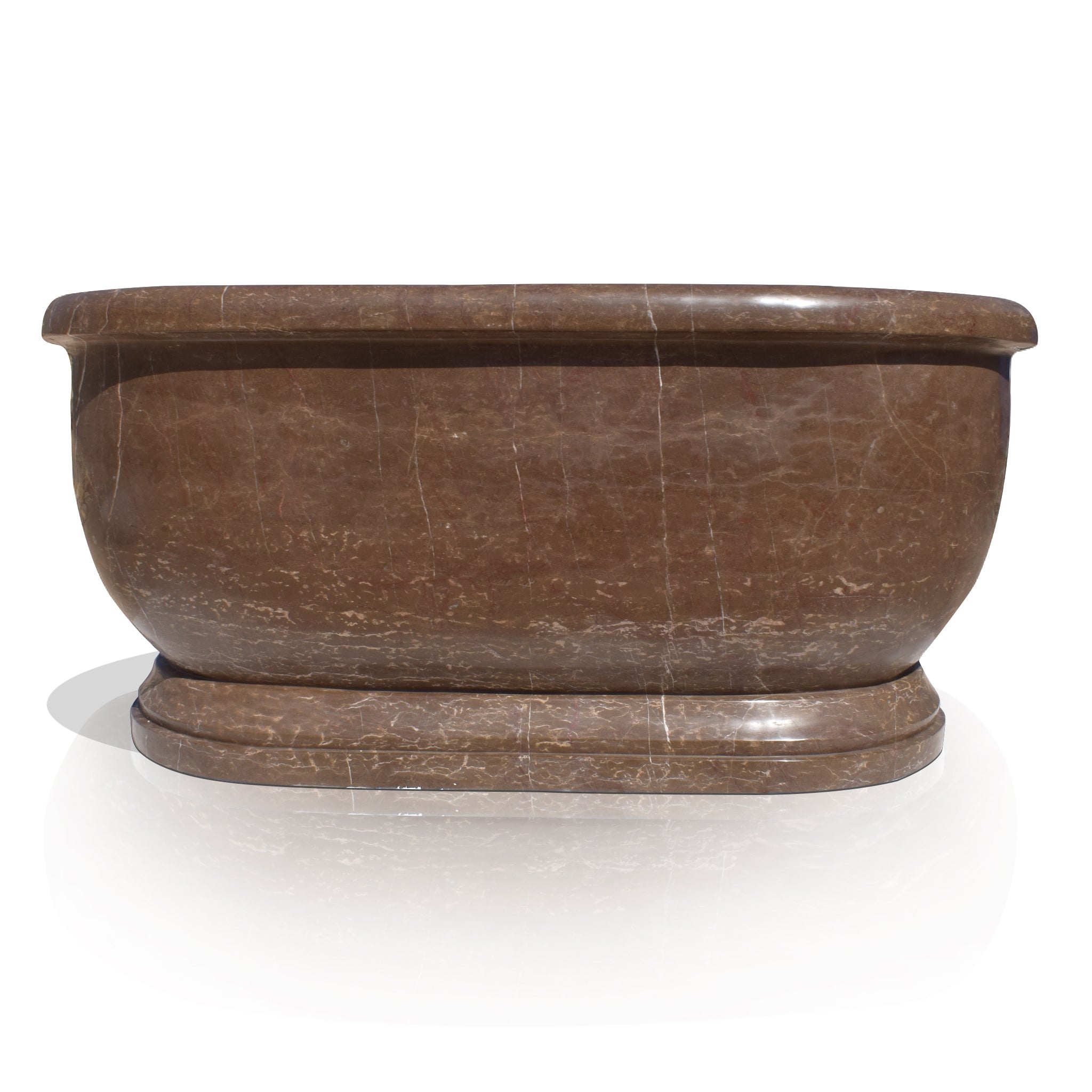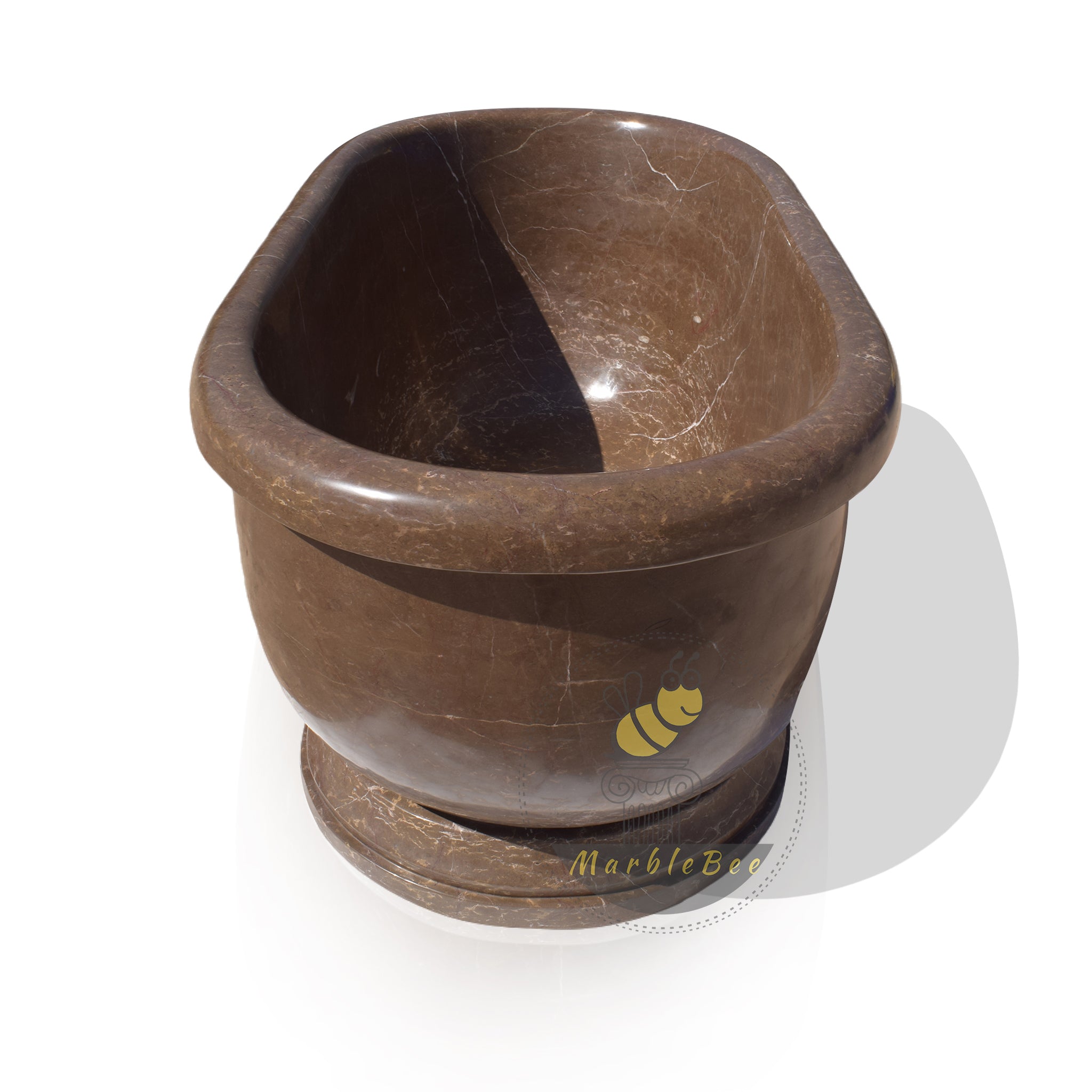 This exquisite bathtub, crafted from rich tan marble, offers a luxurious centerpiece for any bathroom. Its natural brown marble tones lend an air of timeless elegance, perfectly complementing both modern minimalist designs and classic, opulent aesthetics. This piece evokes a sense of tranquility and sophistication, making it an ideal choice for a serene home spa or a grand master suite.