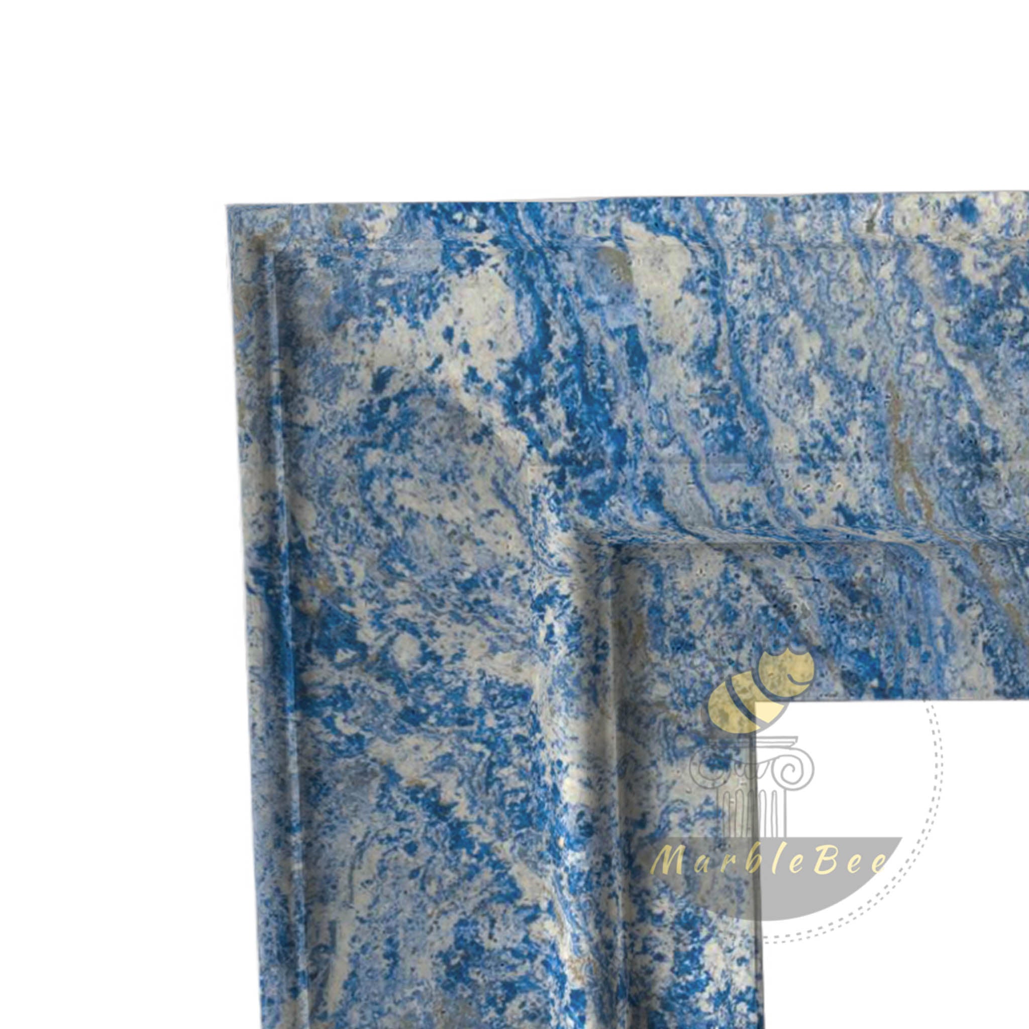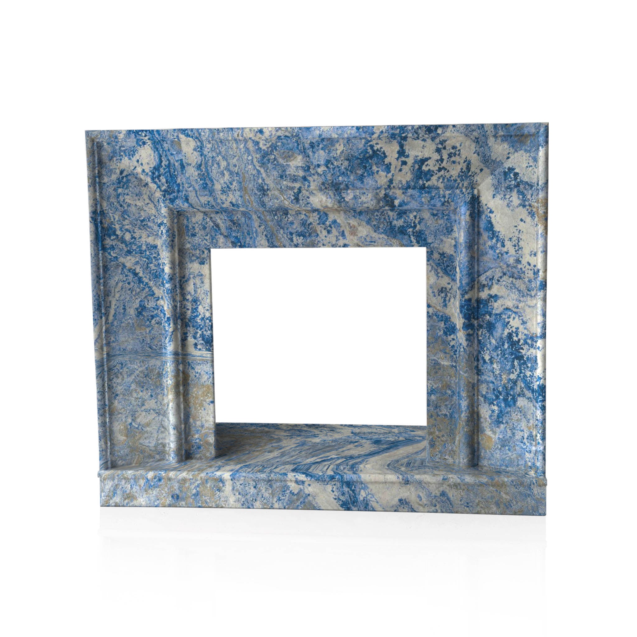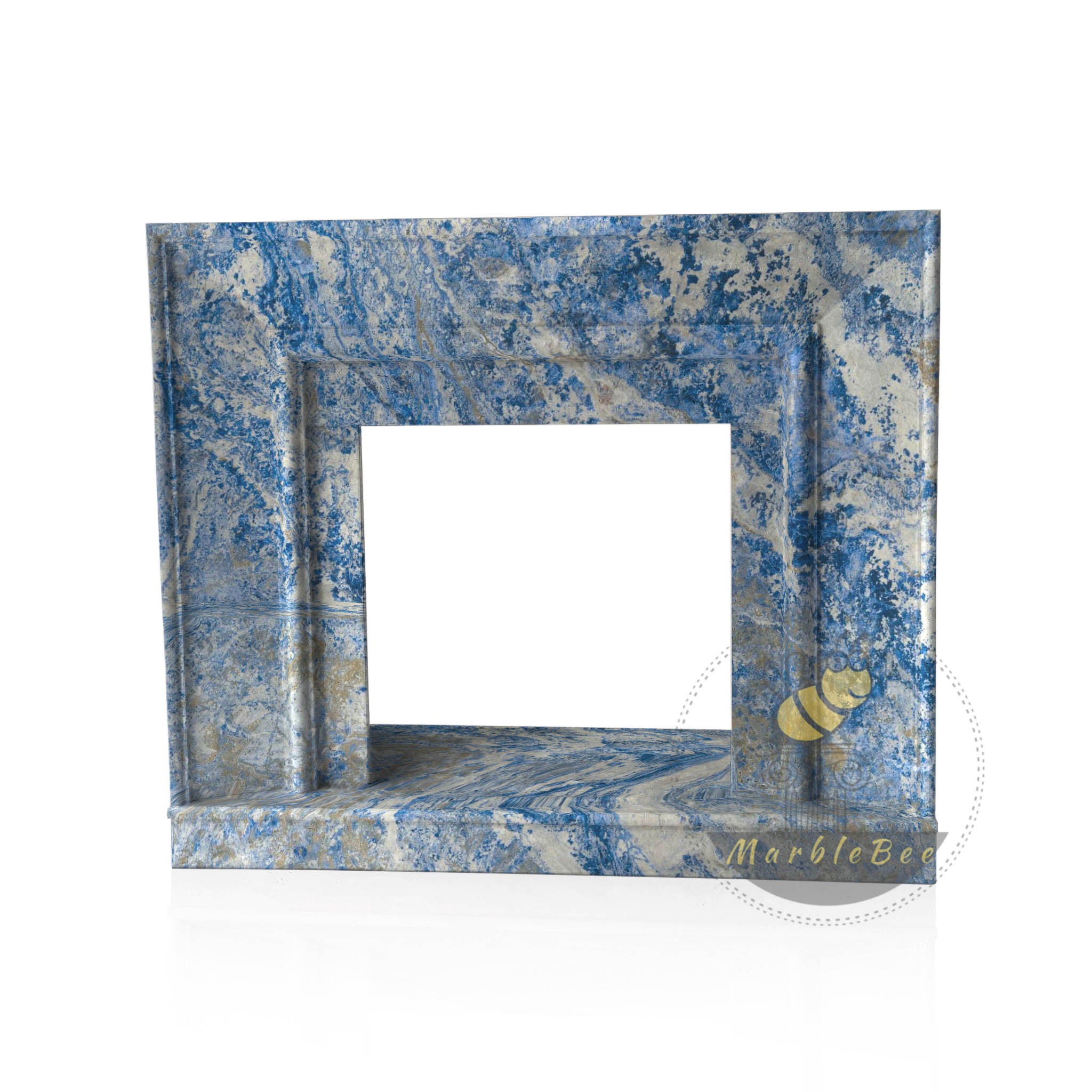 Elevate your living space with this exquisite Blue Marble Fireplace surround, a masterpiece of modern design. Crafted from a single, luxurious block of natural marble, it showcases a captivating pattern of cosmic blues, whites, and golden-beige hues, ensuring each piece is unique. The clean lines and bold, minimalist frame create a sophisticated focal point. With dimensions of 59.06" W x 47.24" H x 11.81" D, this surround is a statement of opulence and high-end taste, perfectly blending natural artistry with contemporary elegance.