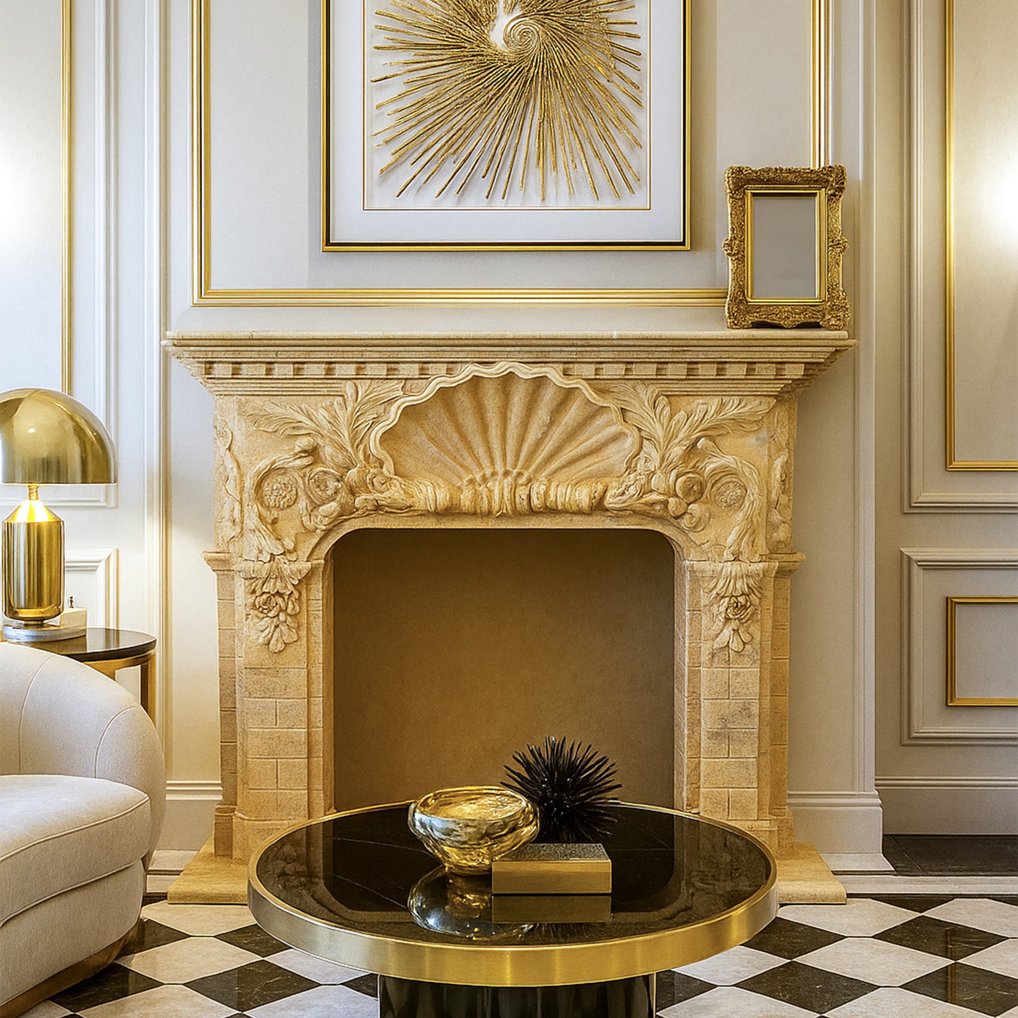 Limestone Fireplace Mantel Hearth Classical Light Brown