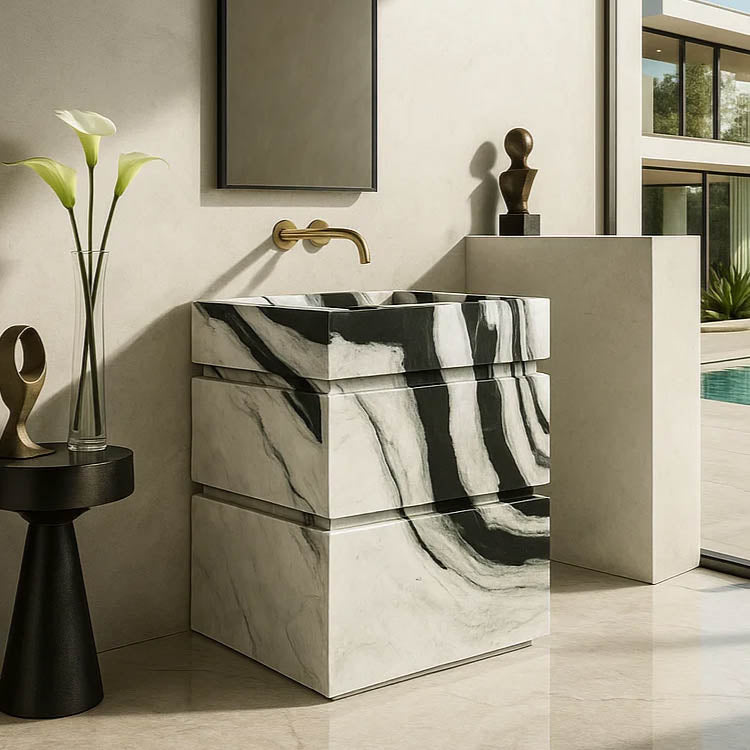 Custom Marble Vanity Unit | Luxury Panda White Marble 35.34" Tall