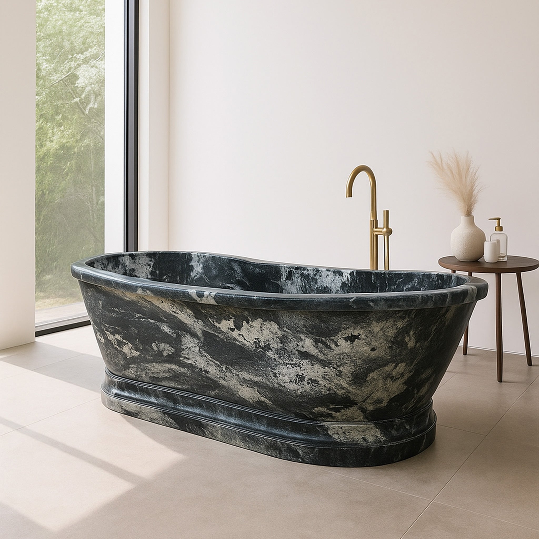 Pedestal bathtub hand-carved from marble traditional style Marblebee
