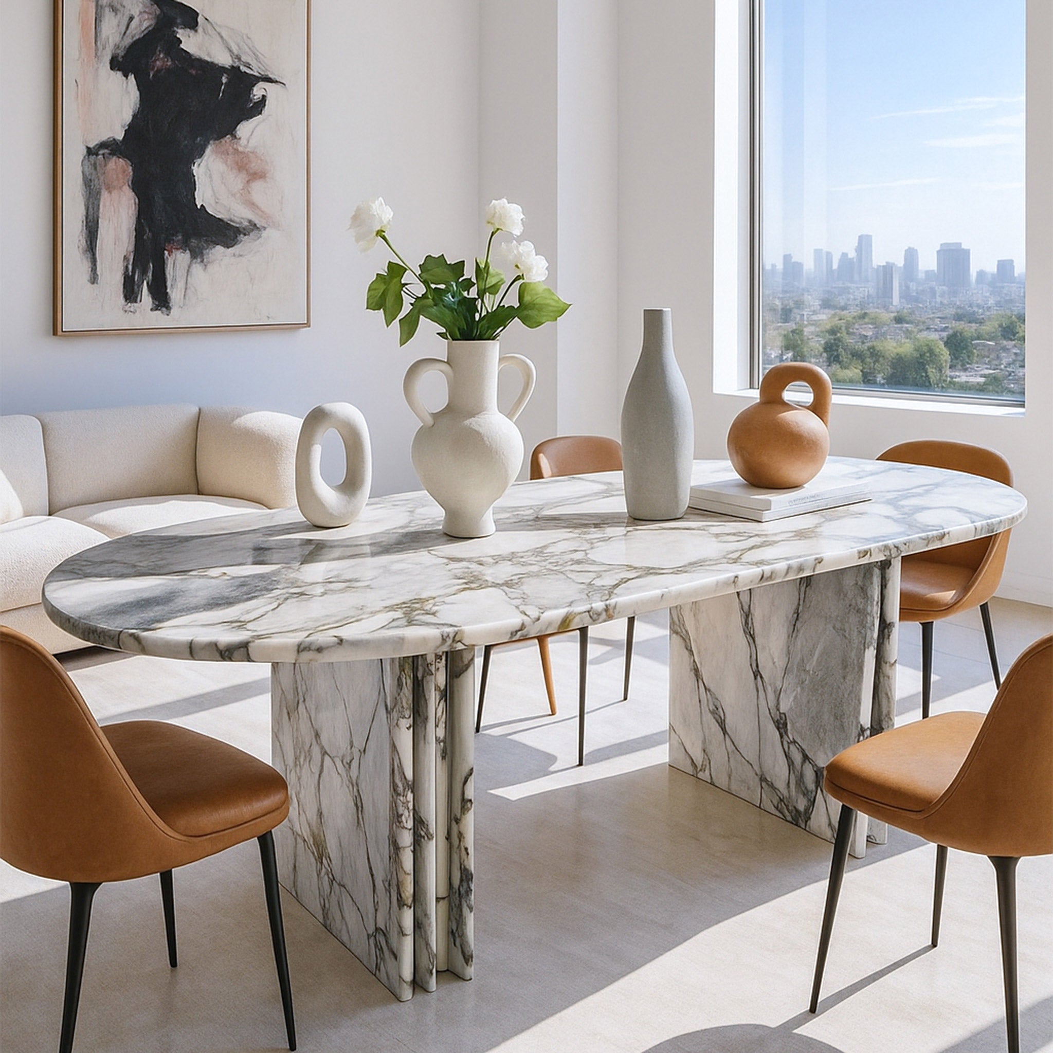 Large Oval Marble Table Calacatta In Stock with Free Delivery