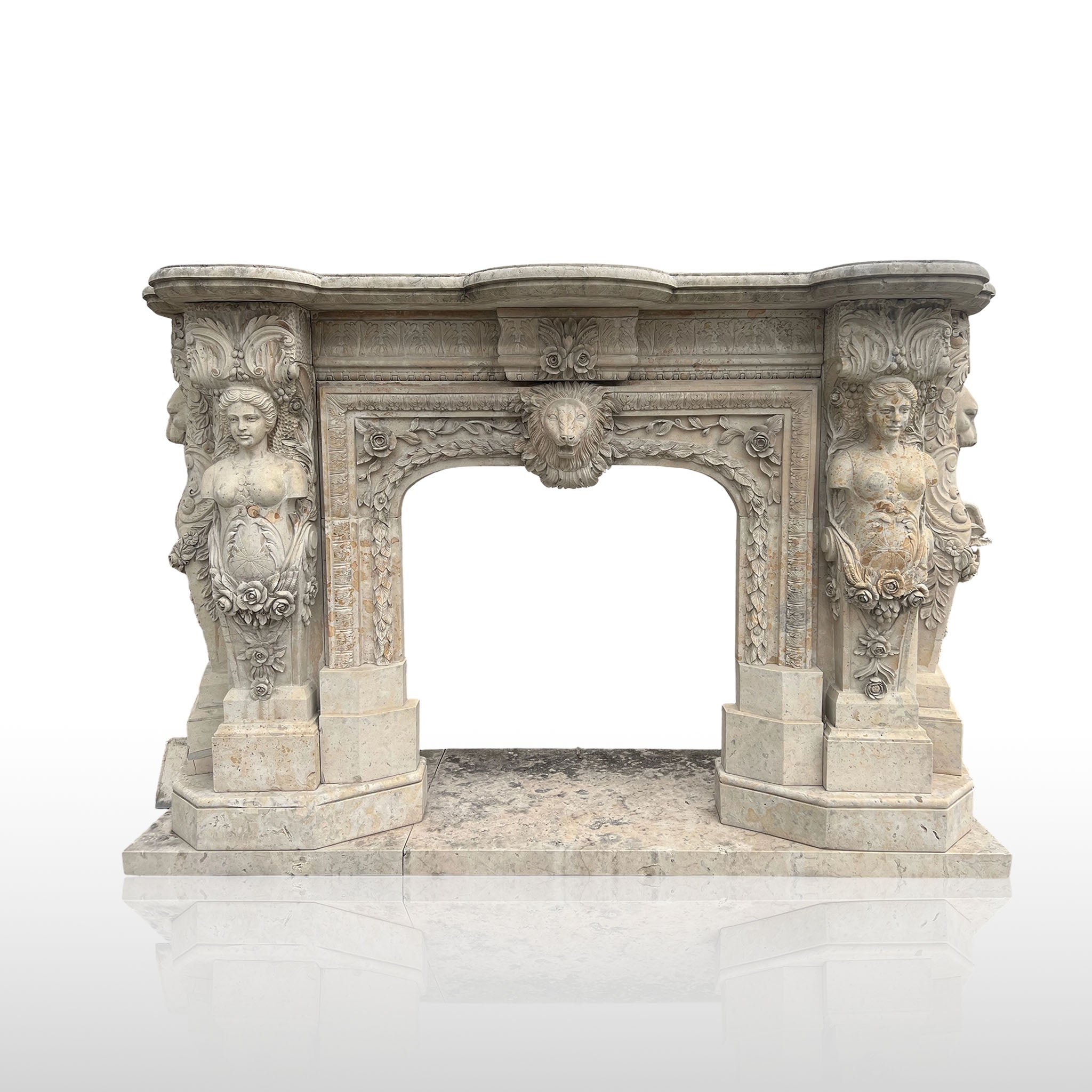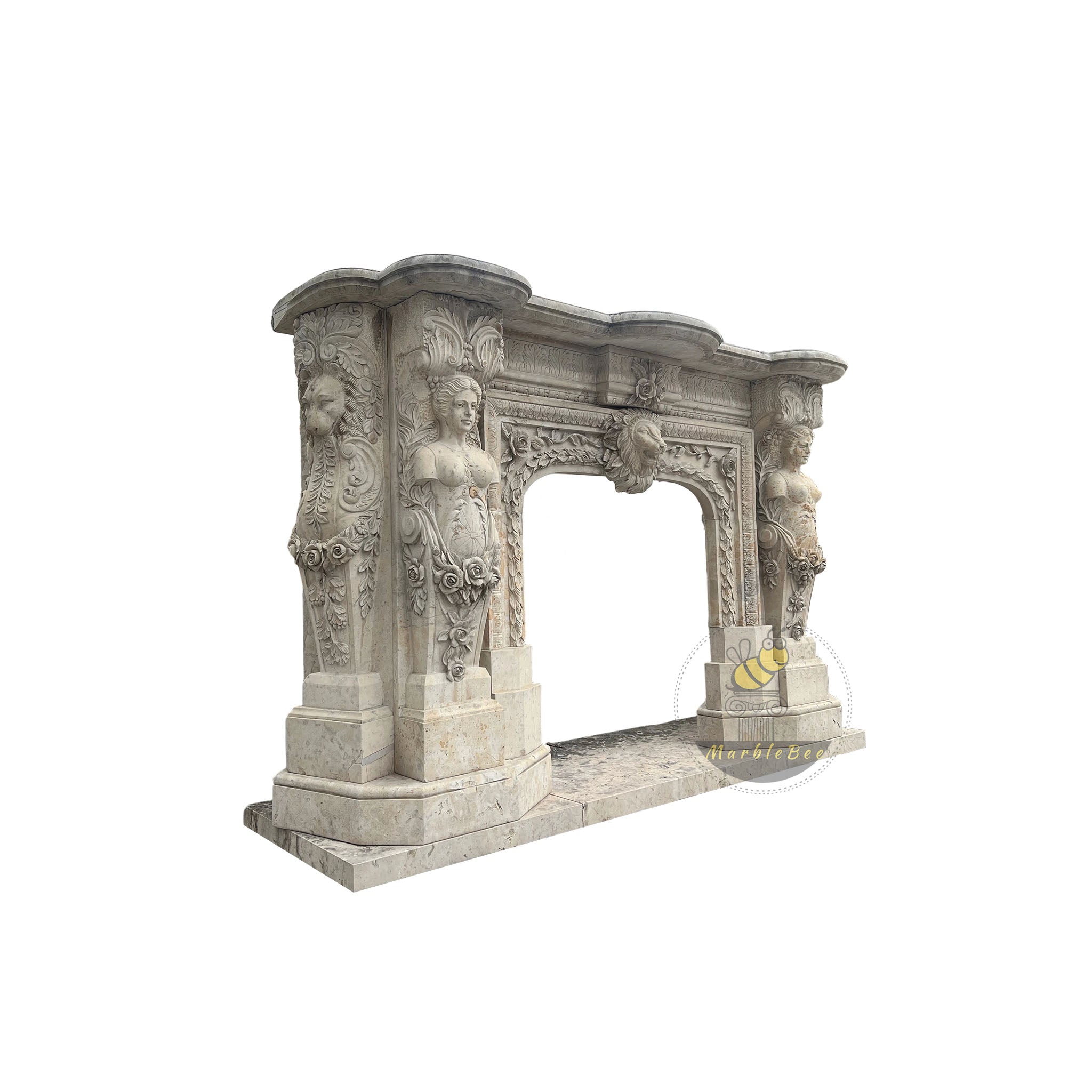 Limestone Fireplace Surround Massive Tiered Beige 104.33" Width x 31.89" Tall