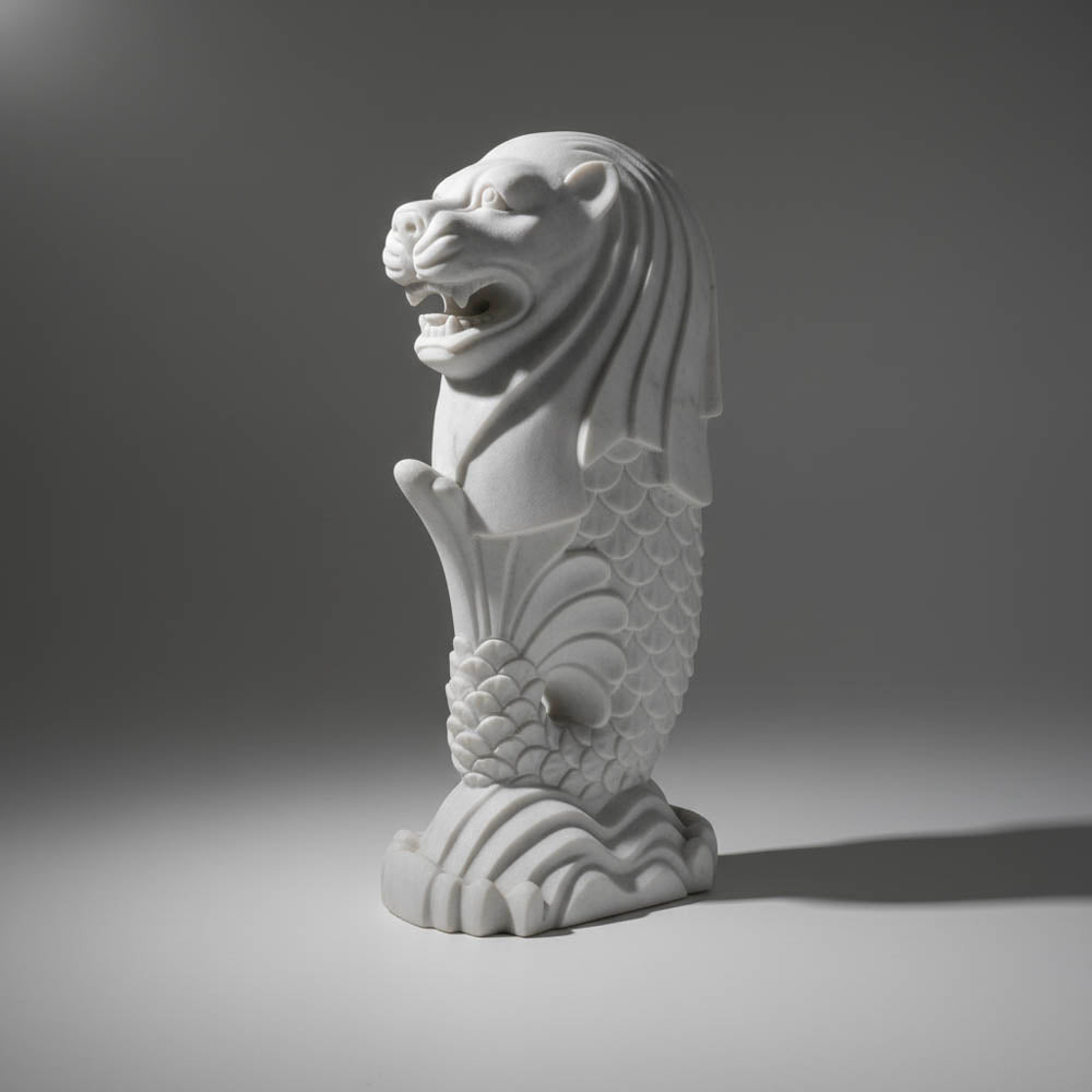 Transform your water feature with this eccentric Lion Fish Fountain, masterfully hand-carved from white marble. This unique piece features the imposing, muscular head of a lion merging into a sleek, scaled aquatic body. A standout feature is the inclusion of majestic, feathered wings, giving the statue a mythical, chimera-like silhouette. The lion is captured in a vigilant roar, designed for water to flow through its open maw. Every scale and feather is intricately detailed, showcasing the artisan's skill in blending terrestrial power with aquatic grace.