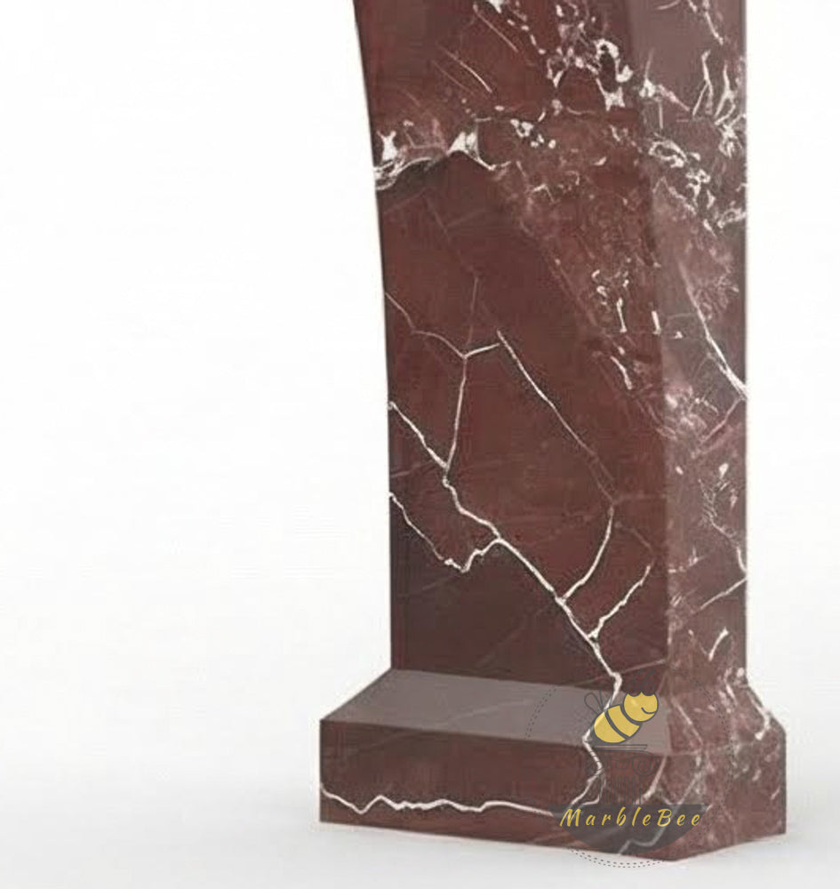 This exquisite hand-carved marble around fireplace is crafted from luxurious Rosso Levanto marble, famous for its deep burgundy background and dramatic white and grey veining. The polished finish highlights the natural opulence of the stone. The design is a timeless classical style, featuring robust pilasters capped with molded details and a substantial mantel shelf. Measuring Width: 59.05511811023622 Inch and Height: 51.181102362204726 Inch, it creates an impressive architectural focal point. Installing this magnificent marble around fireplace will bring a sense of grandeur and sophisticated warmth to a traditional living room, a formal library, or an executive study. *