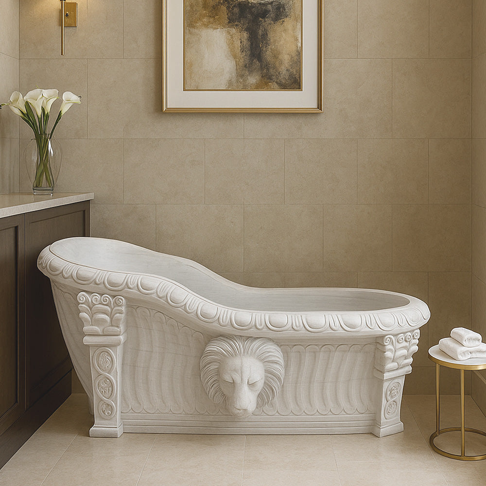 This exquisite Japanese soaking tub, meticulously crafted from Li River White Marble, offers a deep and serene bathing experience. Its beautiful marble material and "Japanese Marble Soaking Tub" title make it a perfect fit for a spa-like retreat or a serene, minimalist bathroom, adding a touch of sophisticated elegance.