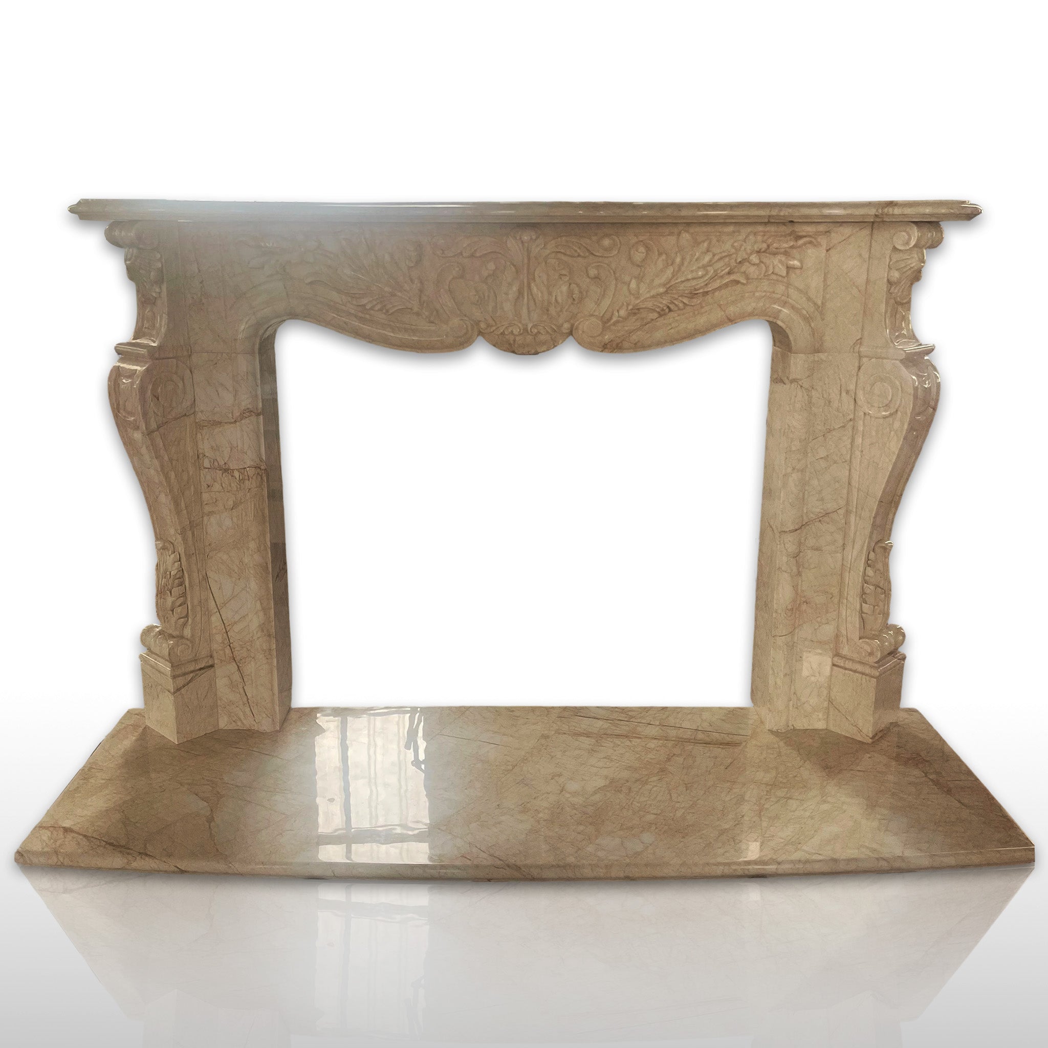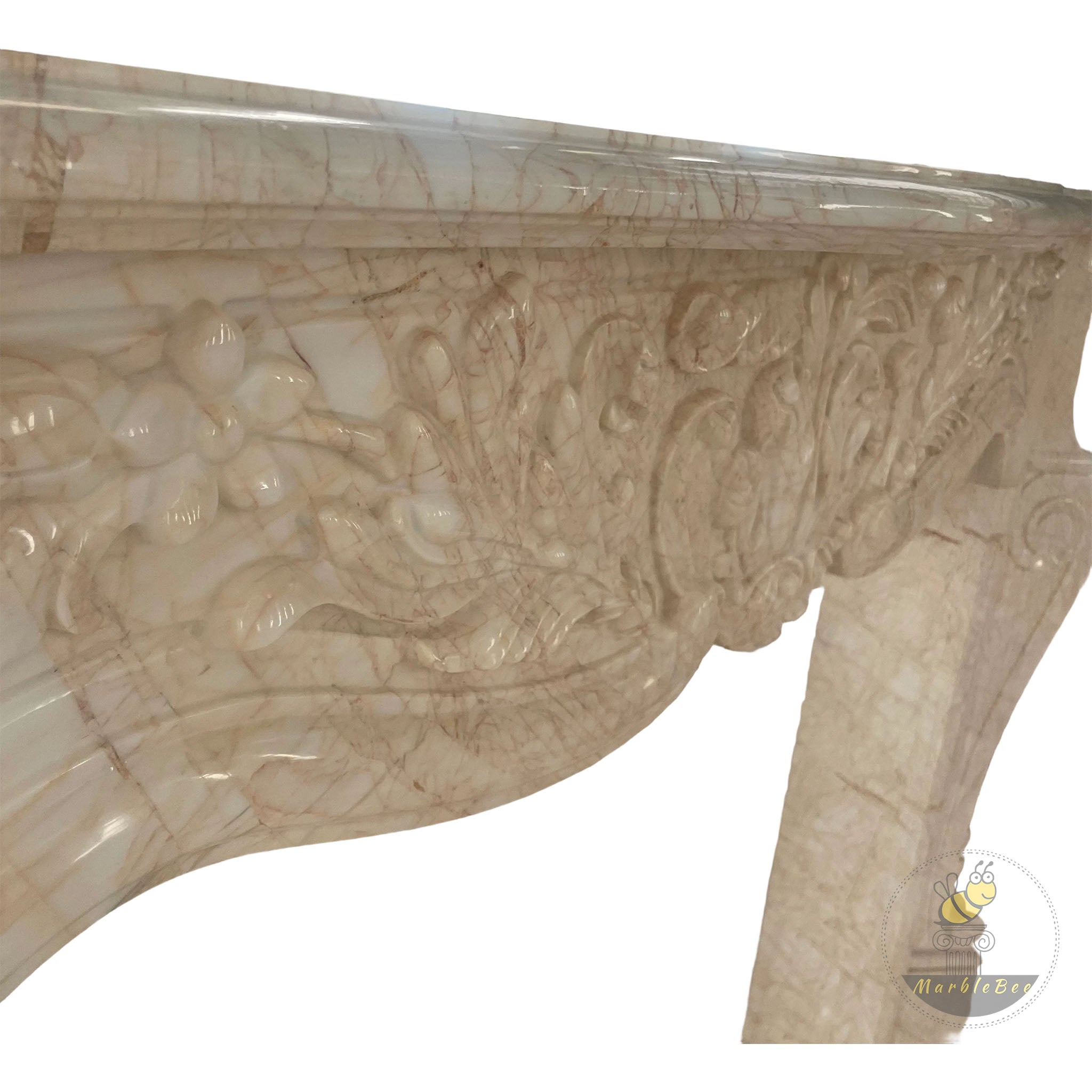 Marble Fireplace Surround Curved Floral Console 76.77" Width x 49.21" Height