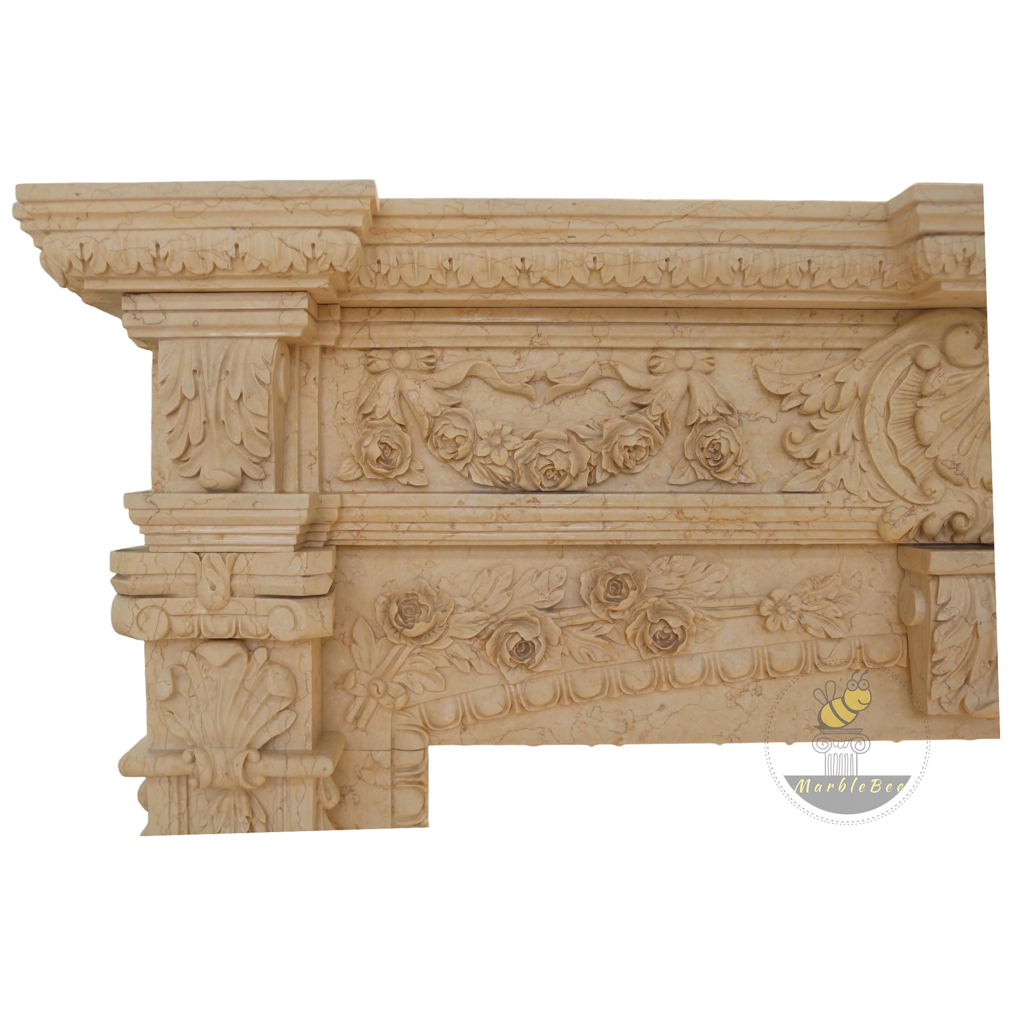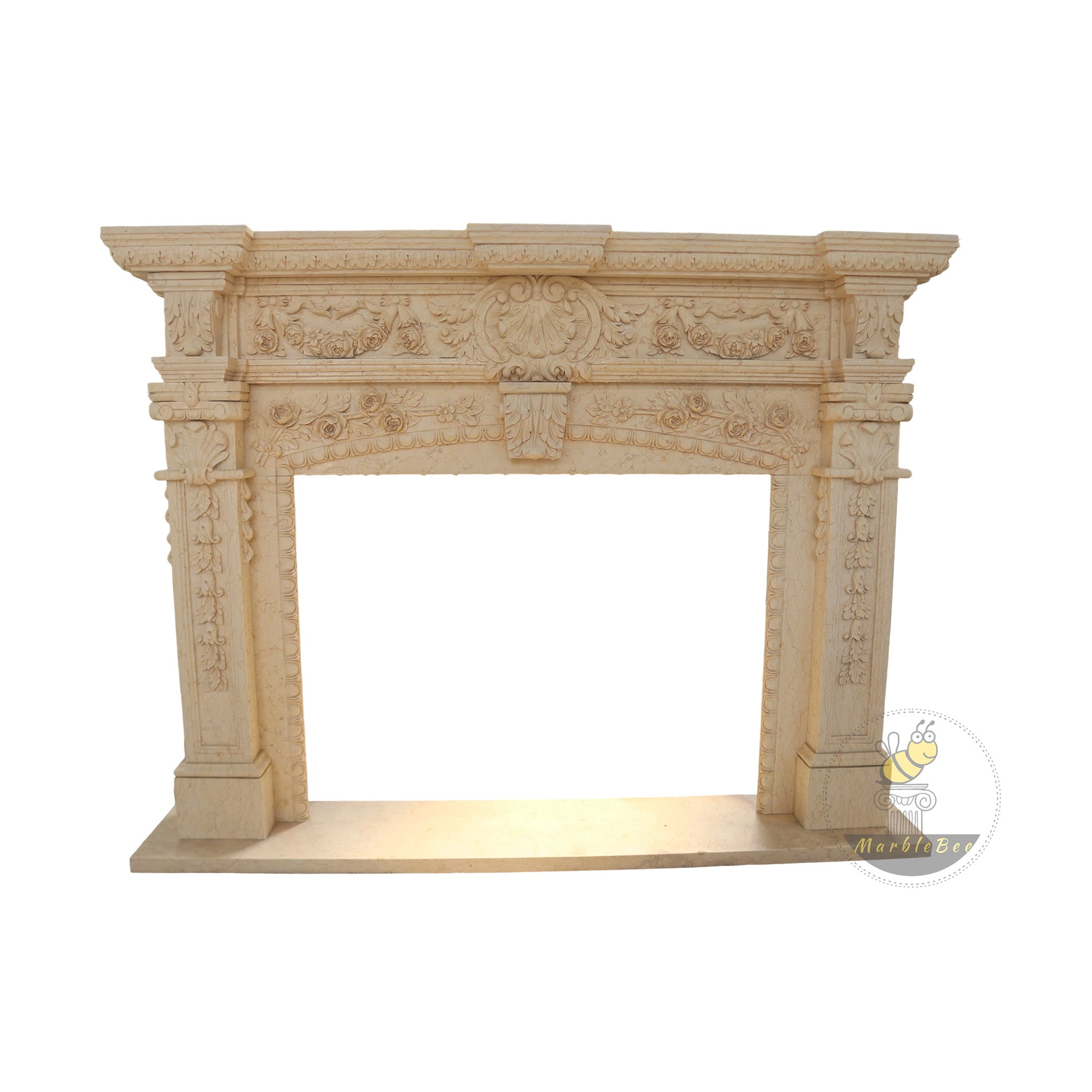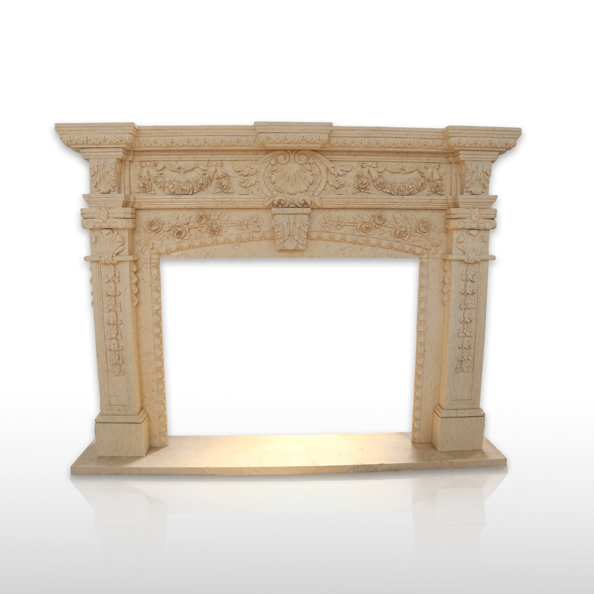 Marble Fireplace Surround | Egyptian Beige Full Floral Carving 66.93" Width x 58.27" Tall
