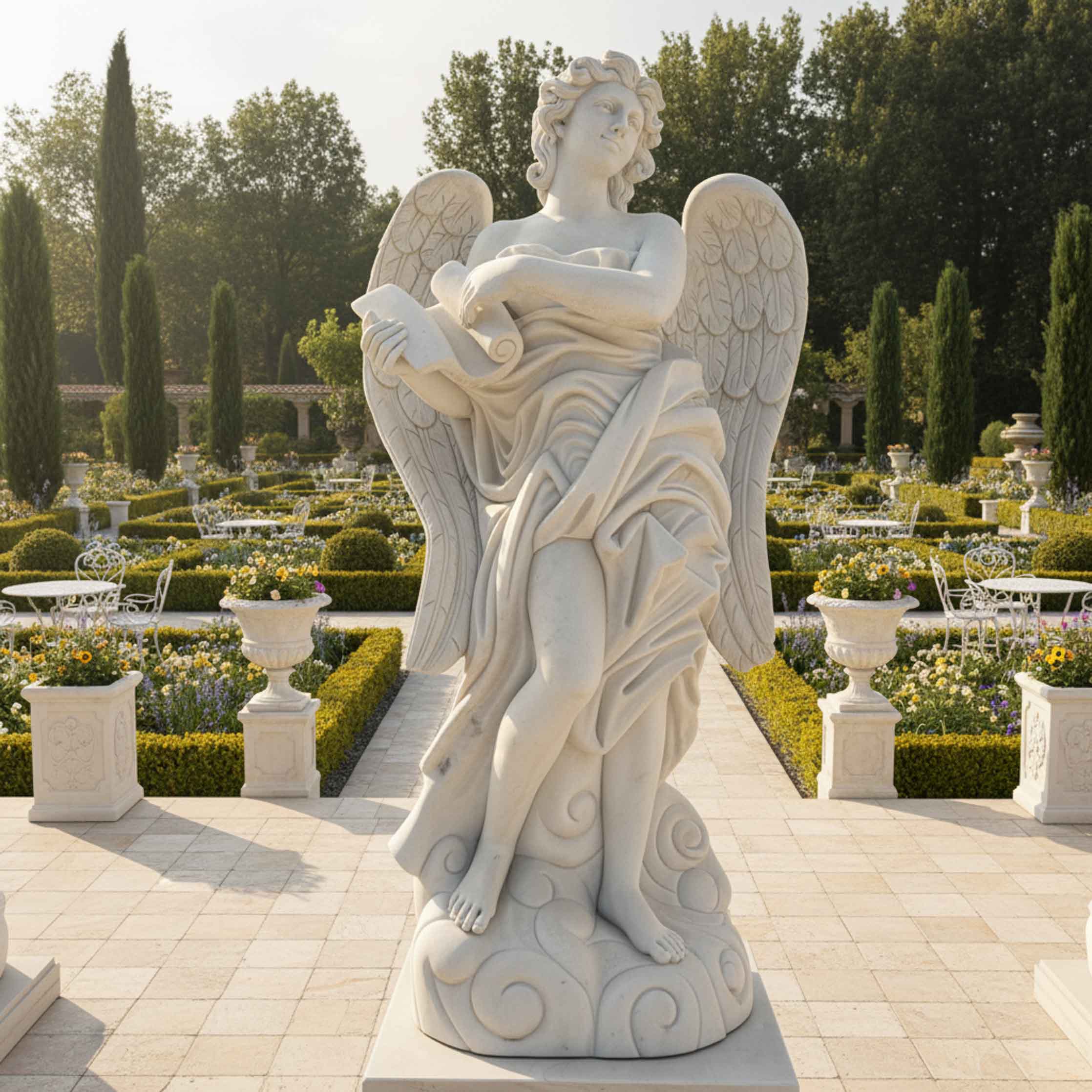 Marble sculpture for sale of White marble angel with scroll