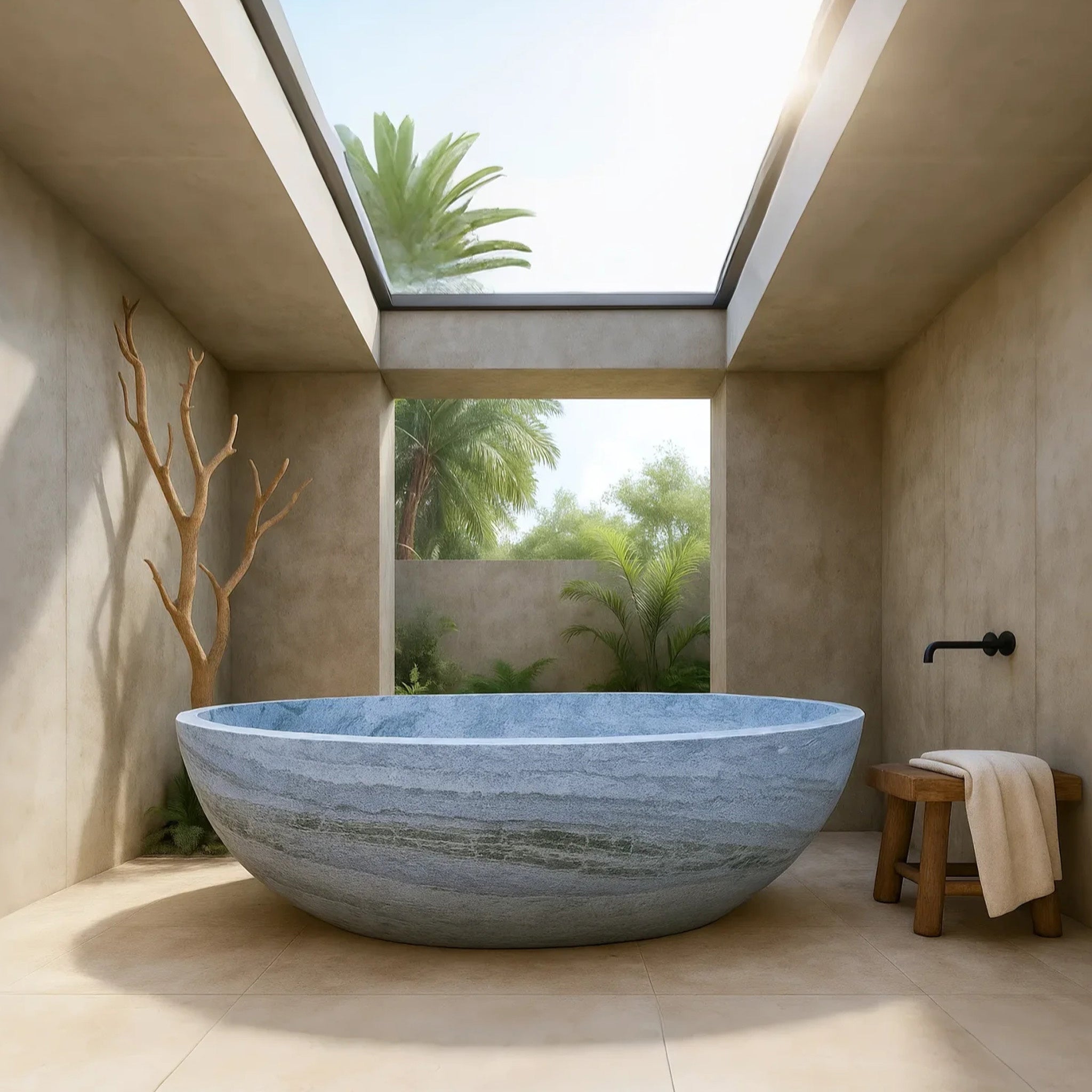 Marblebee Hand-Carved Luxury Bathtub in Rare Green and Blue Marble