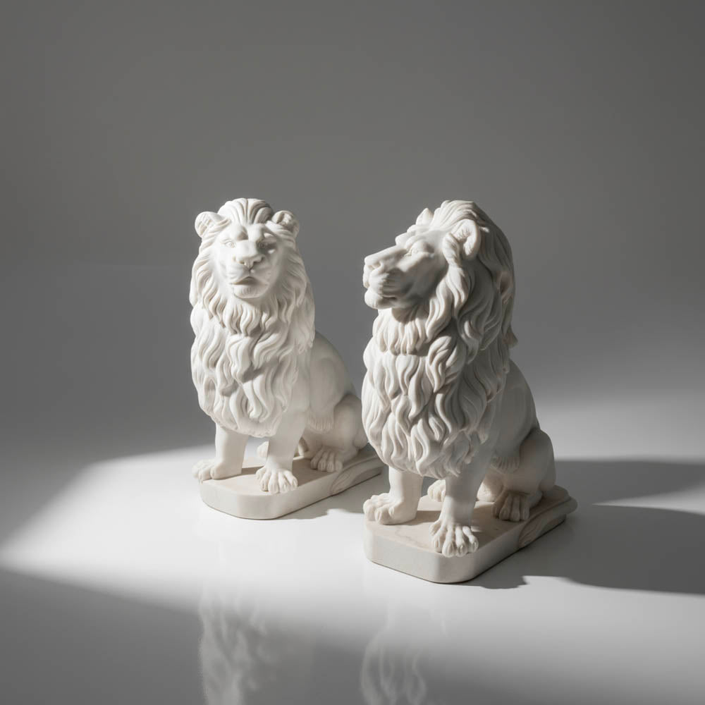 Outdoor Lion Statue White Marble Noble Guardian