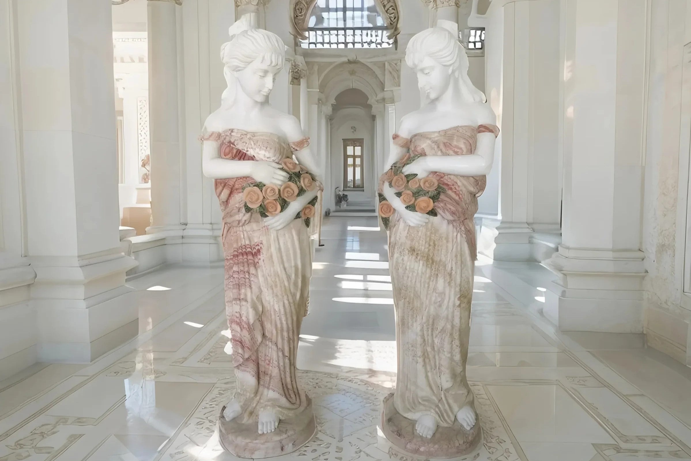 Pair Of Elegant Goddess Marble Statues