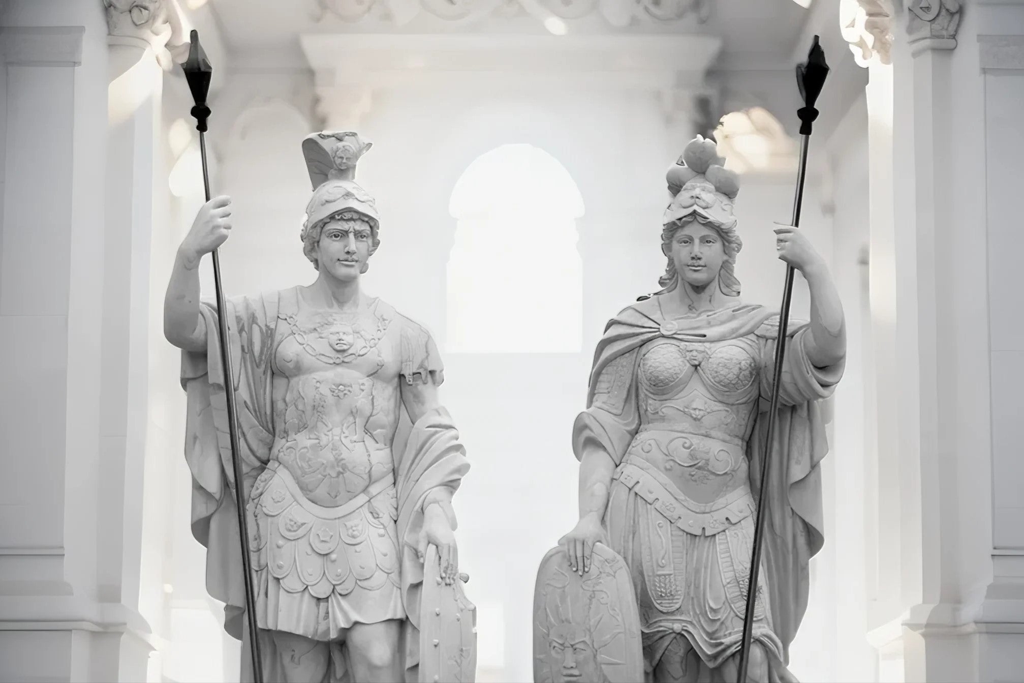 This Roman marble statue of Athena captures the goddess of wisdom and warfare in exquisite detail. Crafted from premium marble, the statue showcases her iconic helmet, flowing robes, and poised stance, embodying strength and grace. Perfect for classical interiors or gardens, these marble statues for sale bring timeless mythological splendor to any space