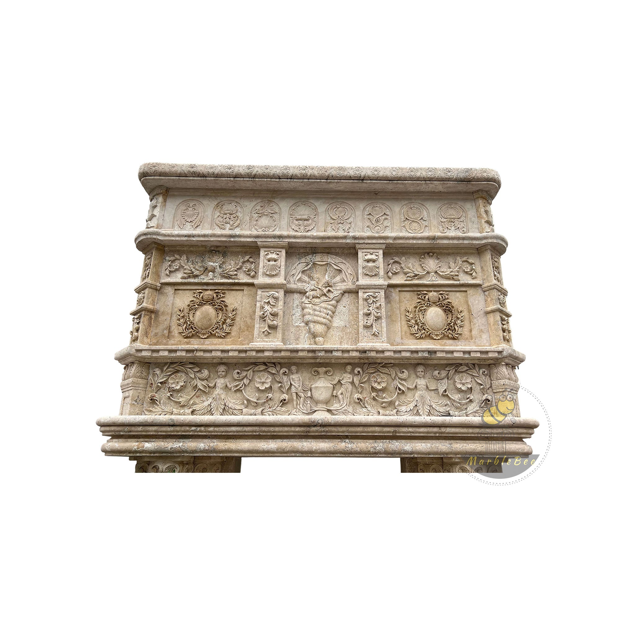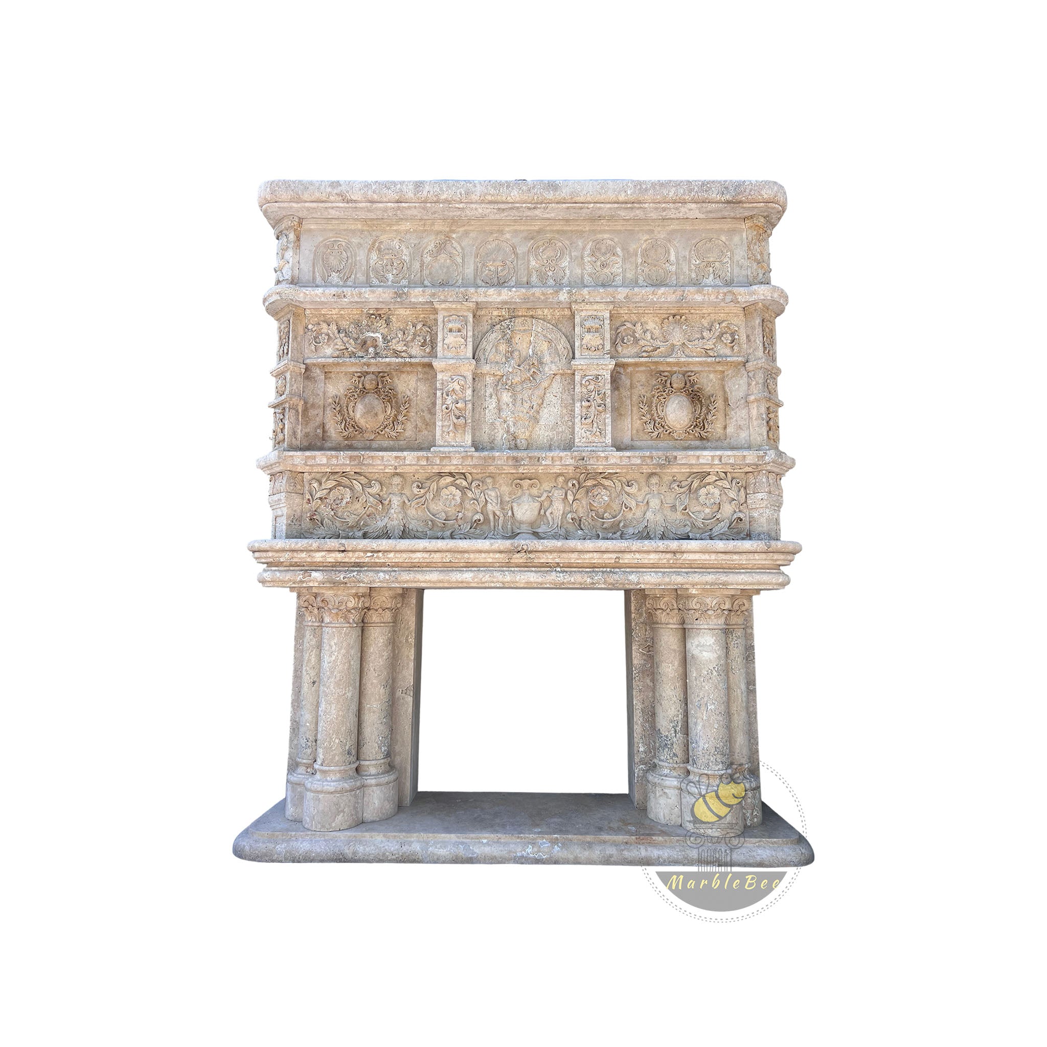 Travertine Fireplace Surround Massive Beige Low Profile 120.08" Width x 31.50" Tall