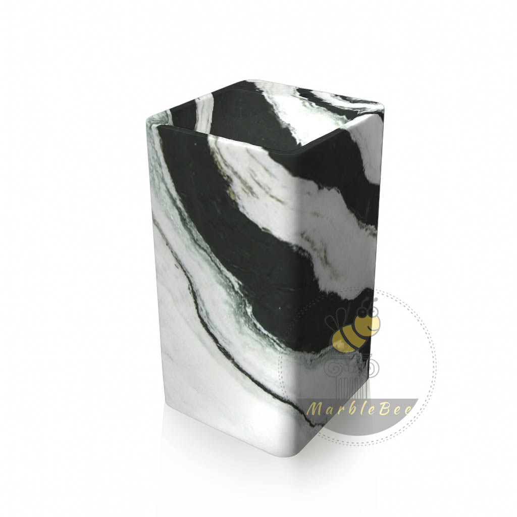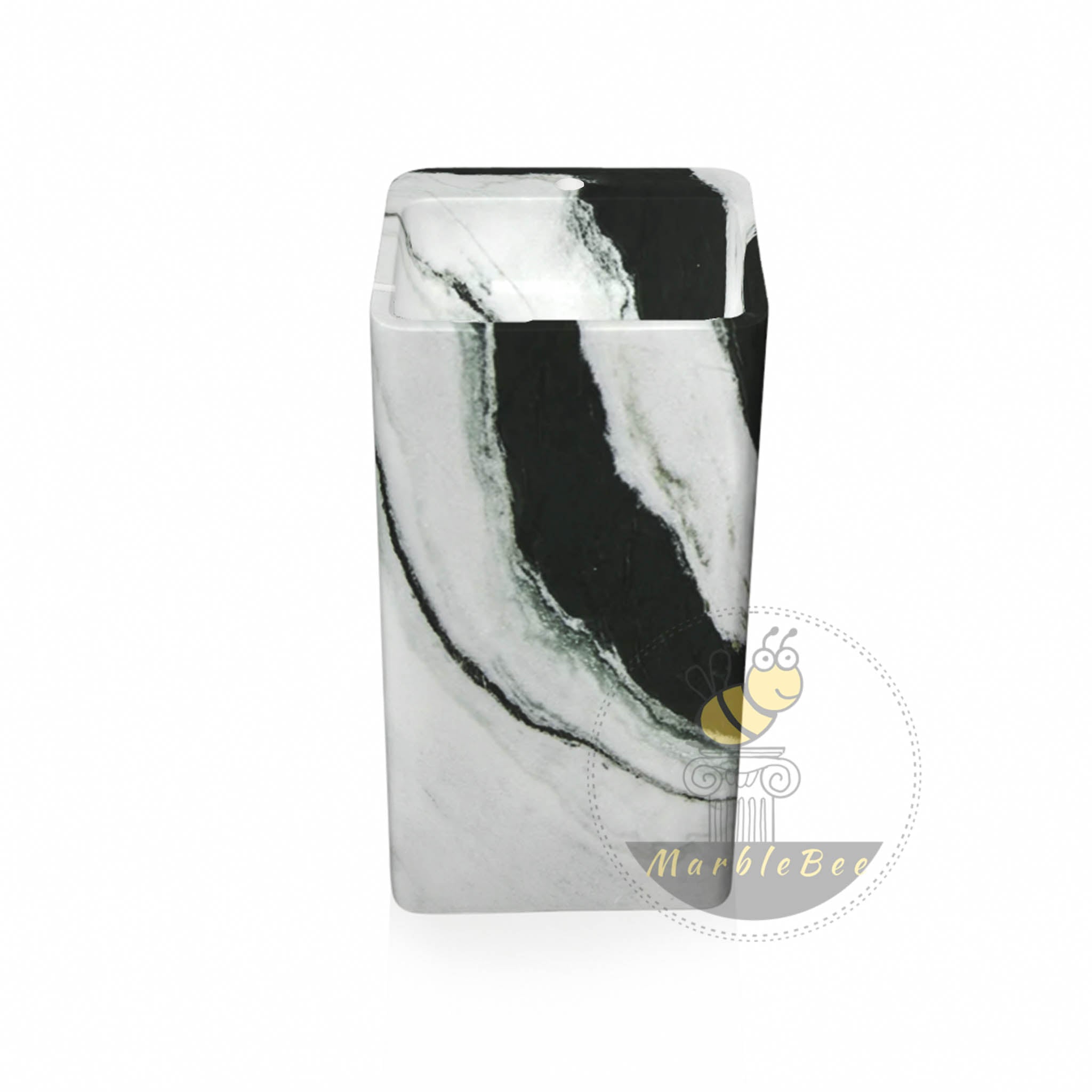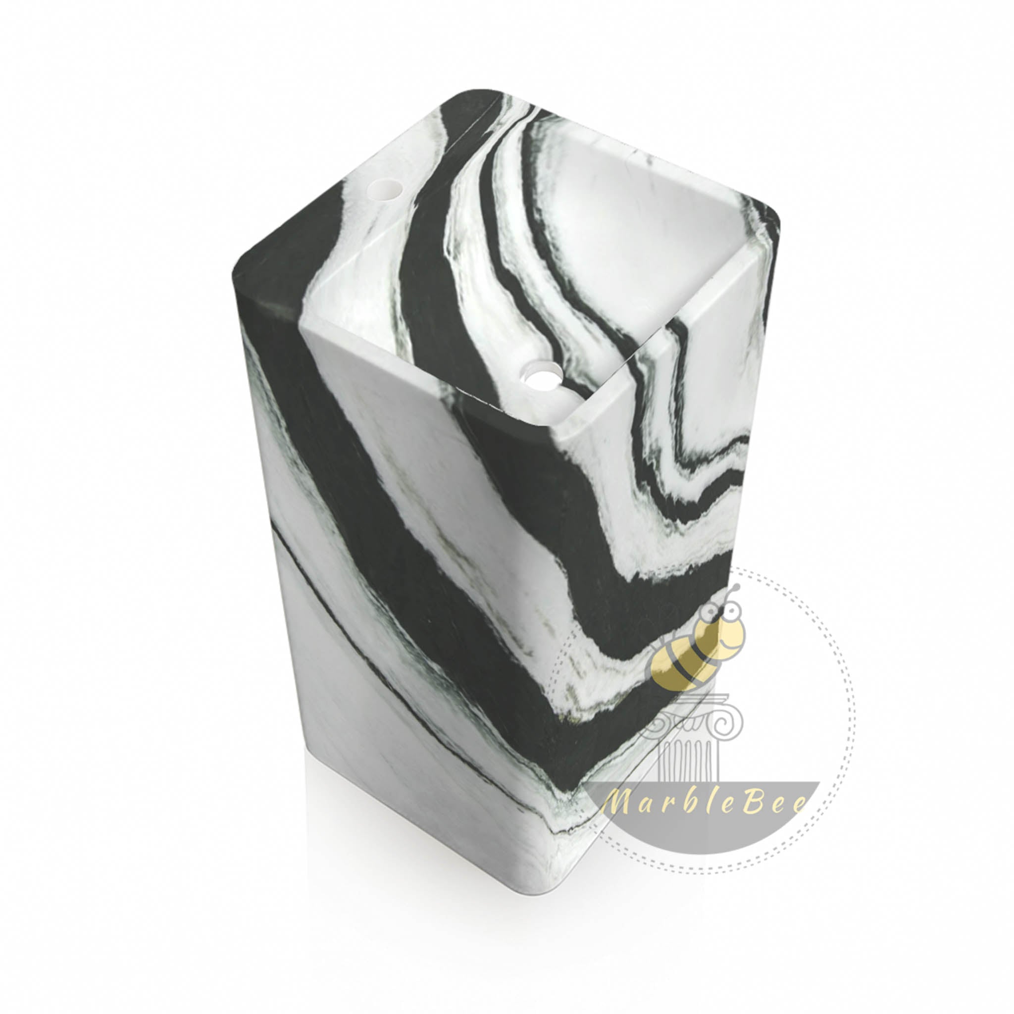 Unique Modern Pedestal Sink | Panda White Marble 33.46" Tall